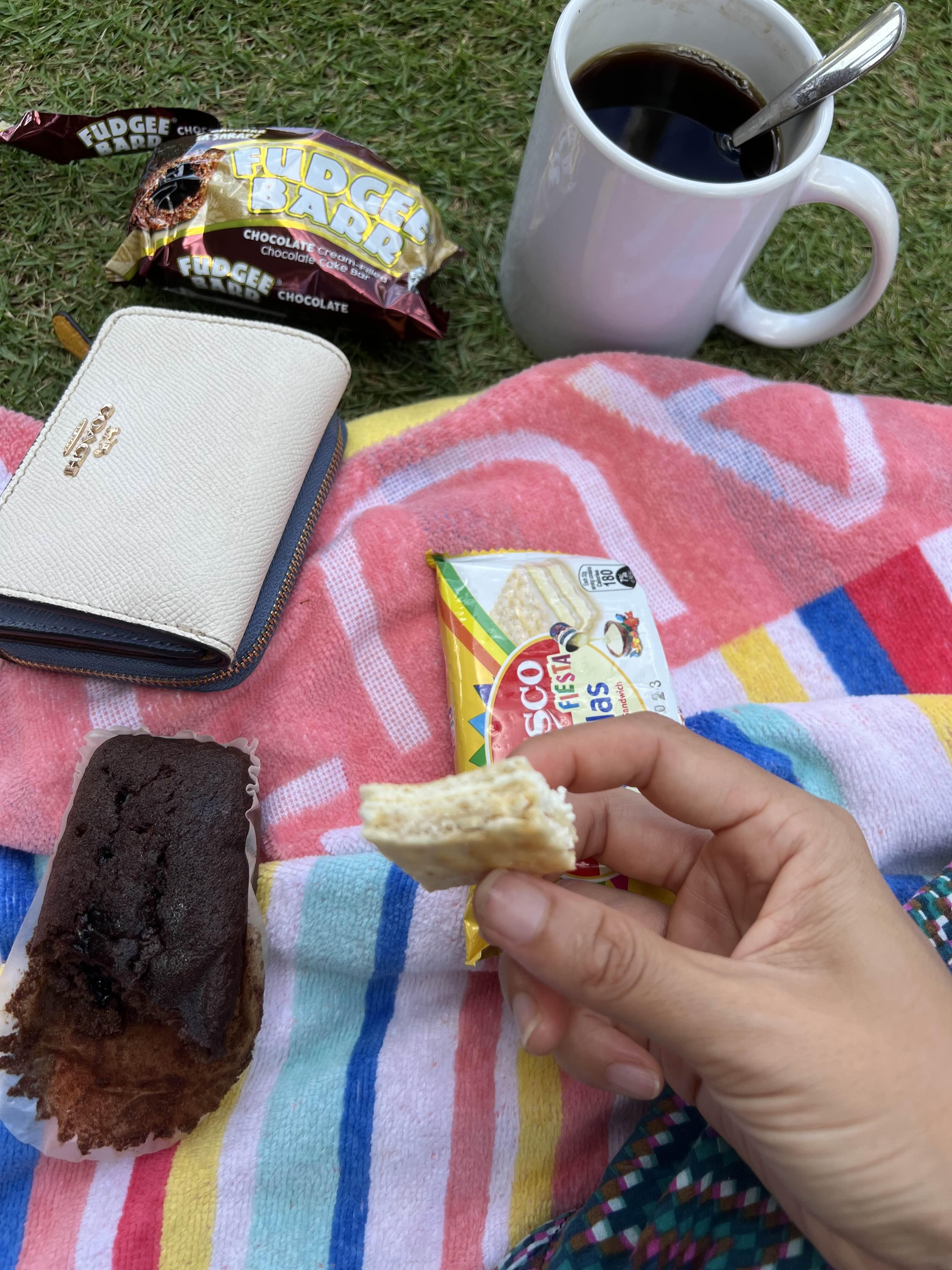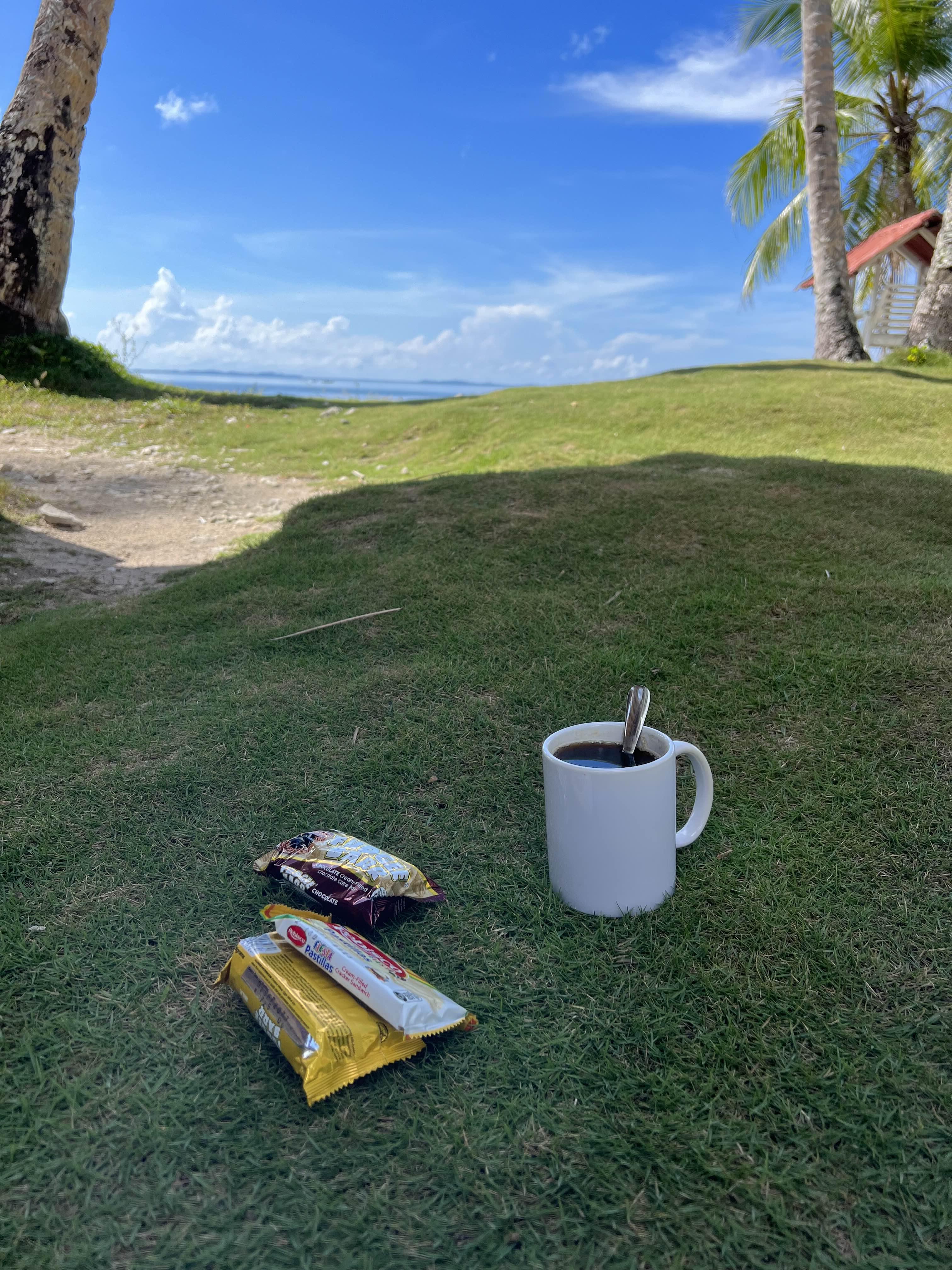 숙소 매점에서 파는 과자와 커피로