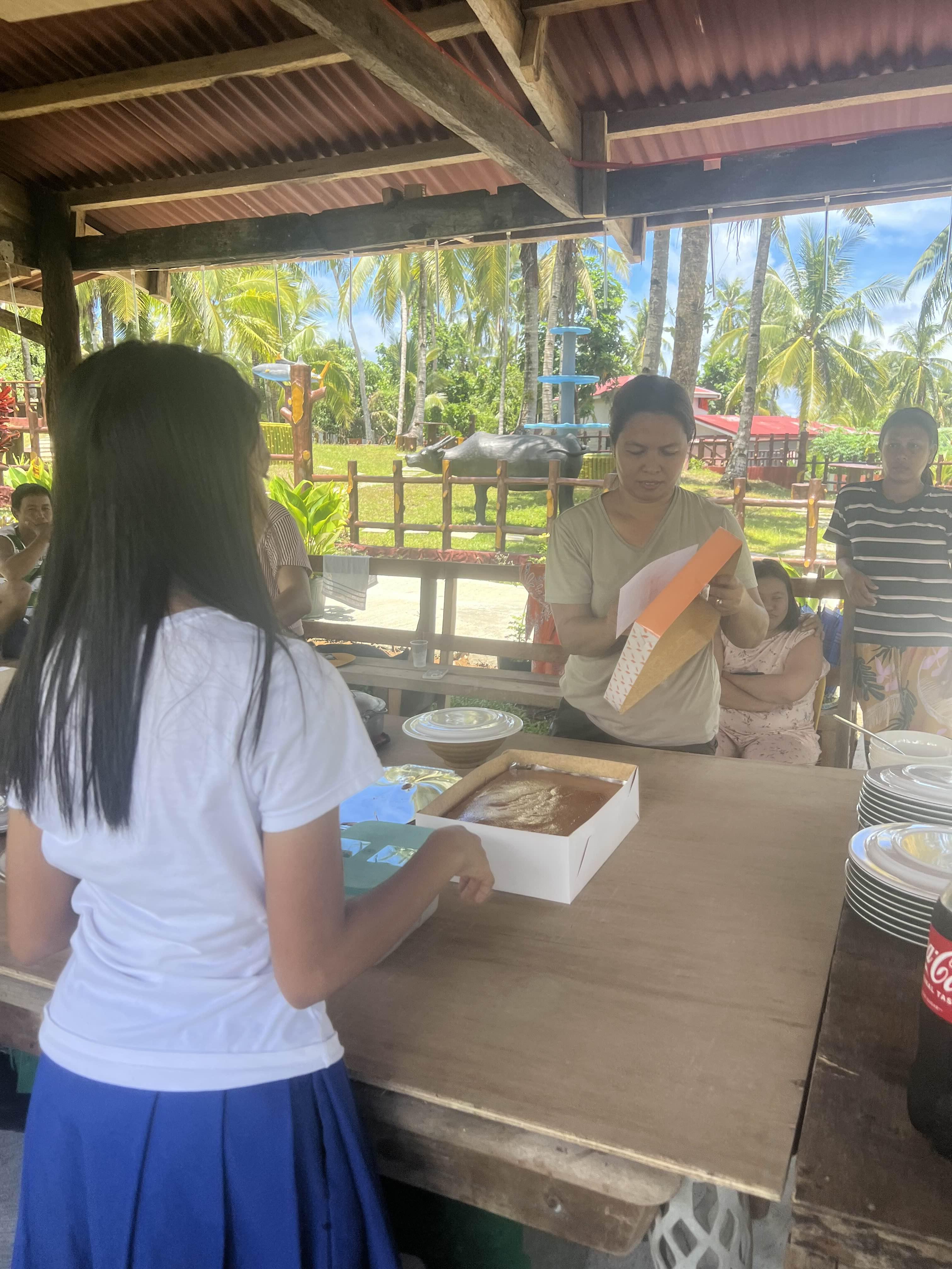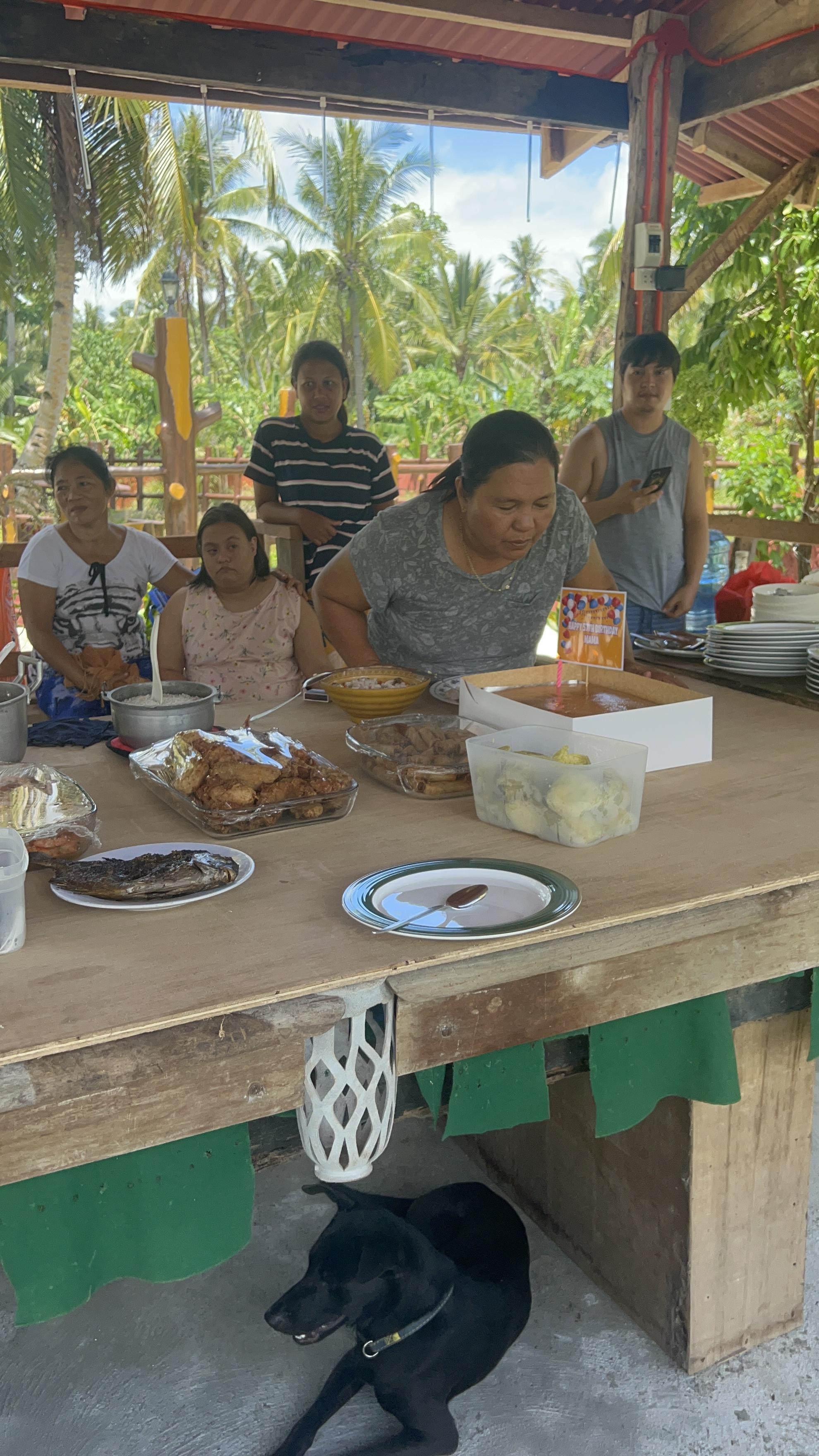가족과 직원들이 모두 한 자리에 모였다,