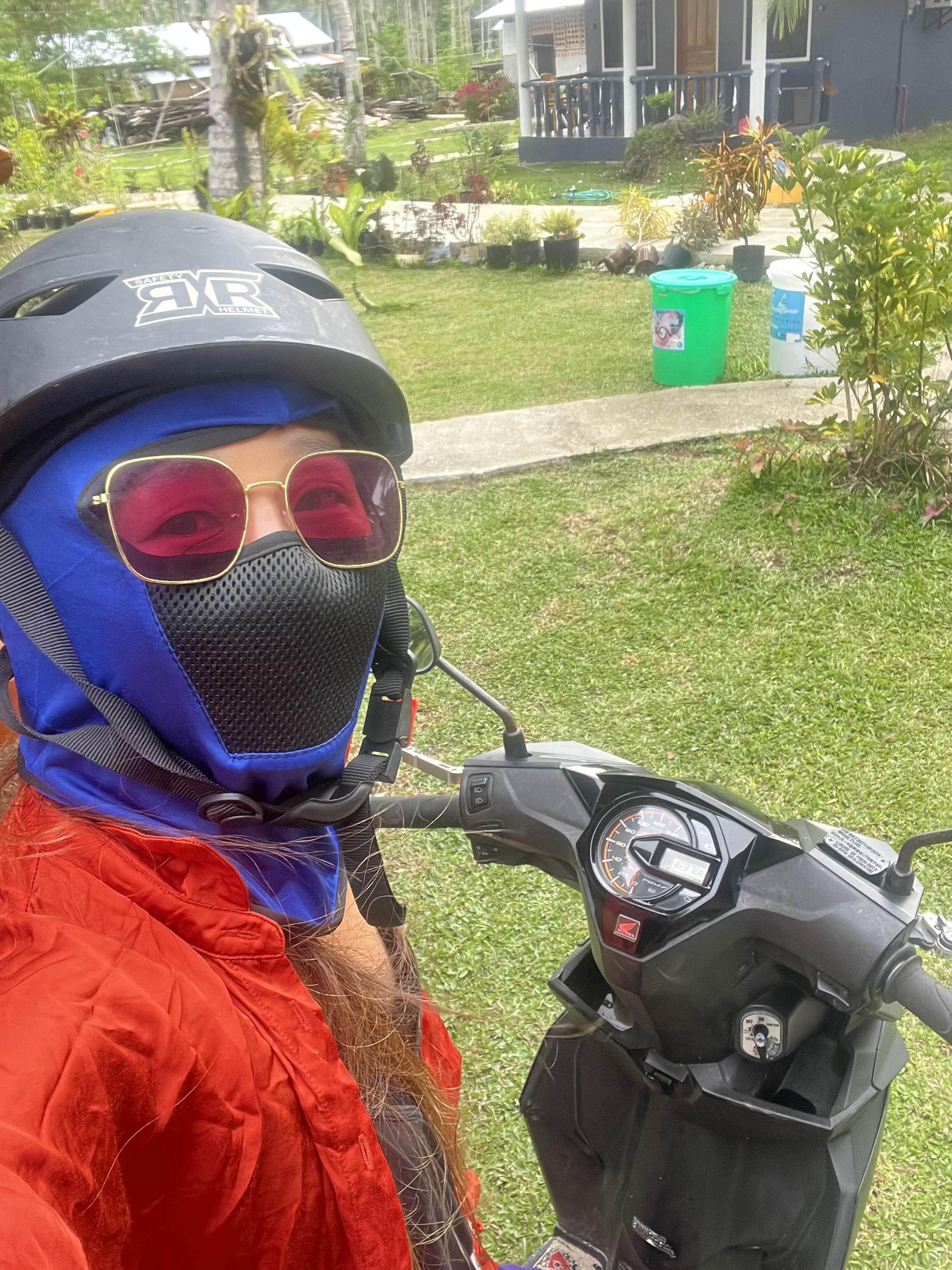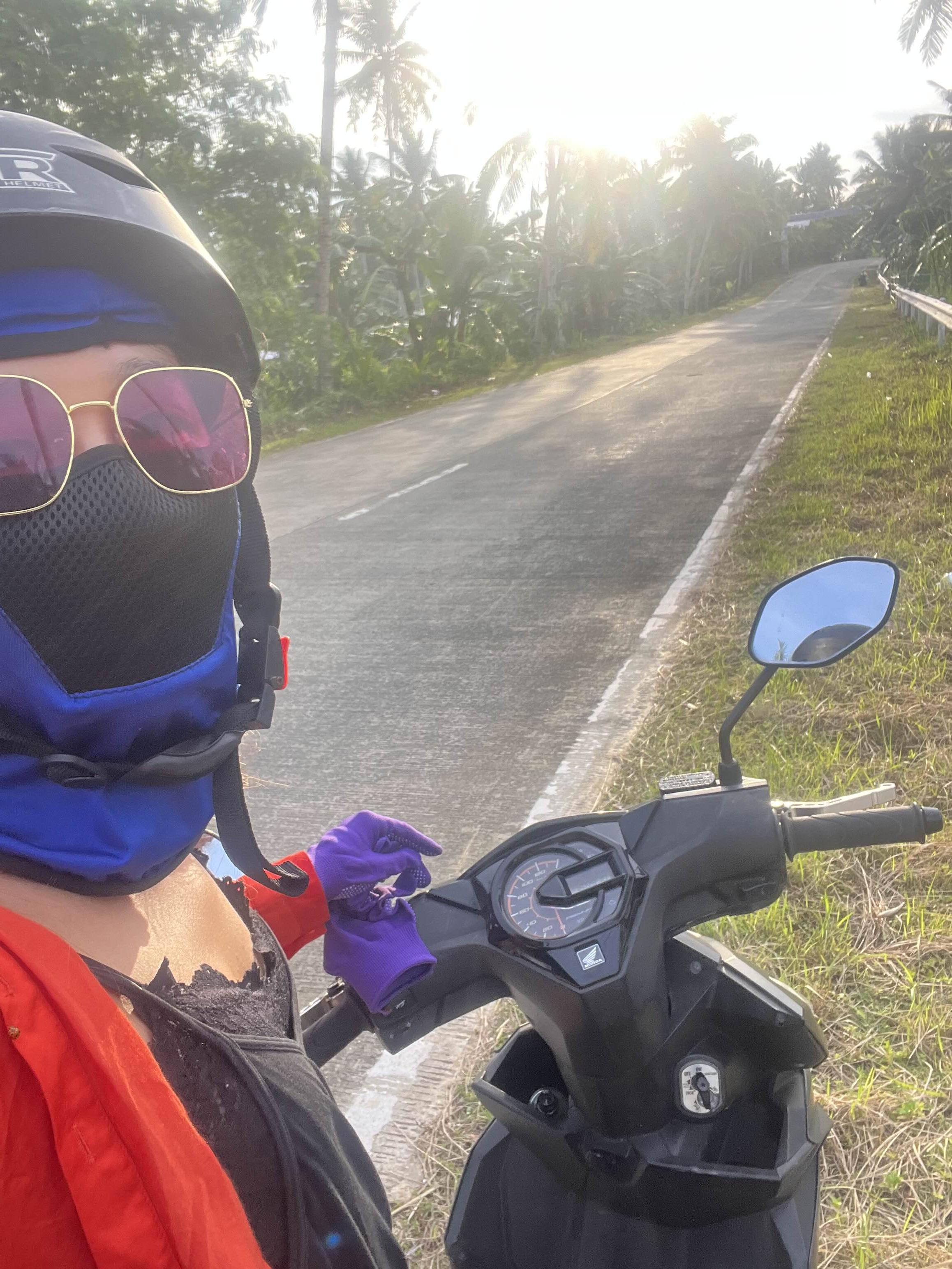 오토바이를 타고,
